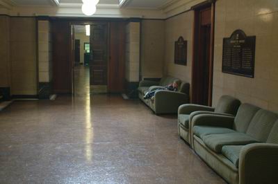 The public halls were closed to the public circa 1987 because the cost of maintaining them in a safe condition were not met by the council. Since then they have since been used as storage space. The roof was not maintained and water leaks caused damaged to some of the interior, particularly the timber panelling to the north wall of the Main Hall.. Part of the interior, such as the council chamber, was sealed off because of the presence of asbestos in the wallcoverings.