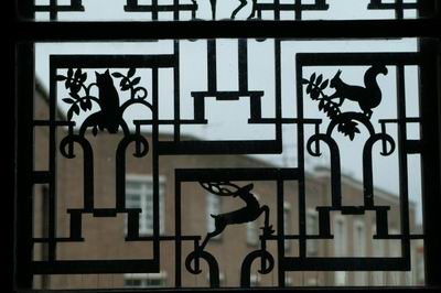 At Hornsey the austerity of this brick tradition is leavened by the carved stone lintel by the sculptor A.J. Ayers and by ornamental metalwork.
