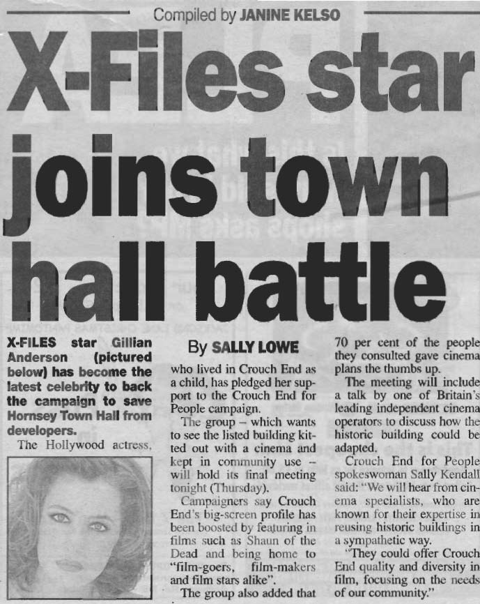 X-File star joins town hall battle 4 November 2004 | Hornsey Journal | press clipping