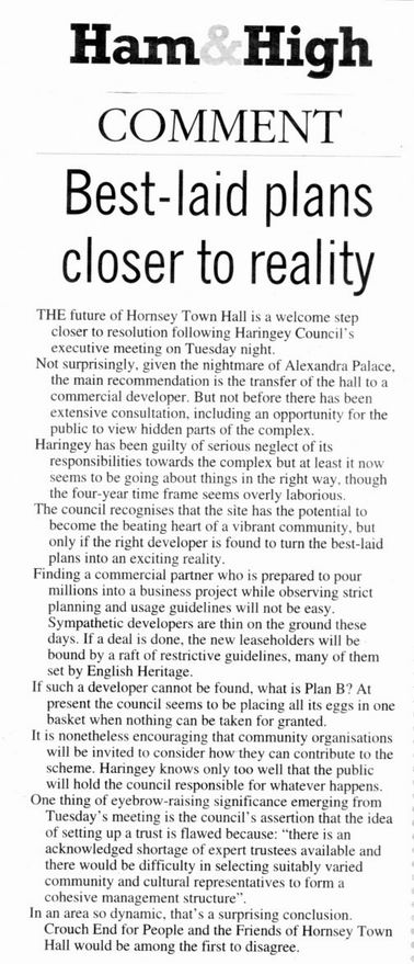 Plan for town hall to be run by trust 18 November 2004 | Hornsey Journal | press clipping