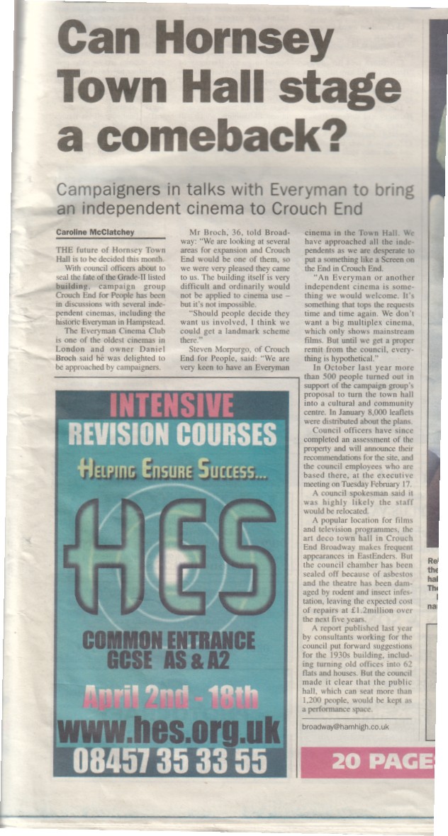 Can Hornsey Town hall stage a comeback?5 February 2004 | Ham & High | press clipping |