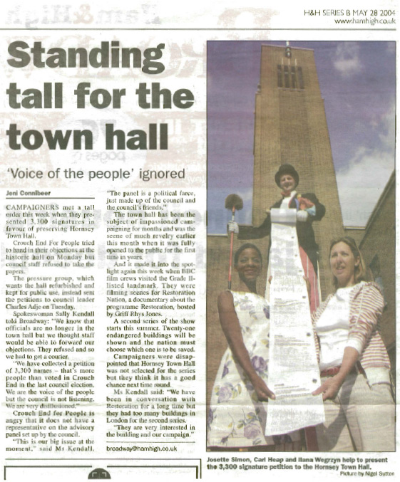 Town hall petition gets frosty reception 27 May 2004 | Hornsey Journal | press clipping
